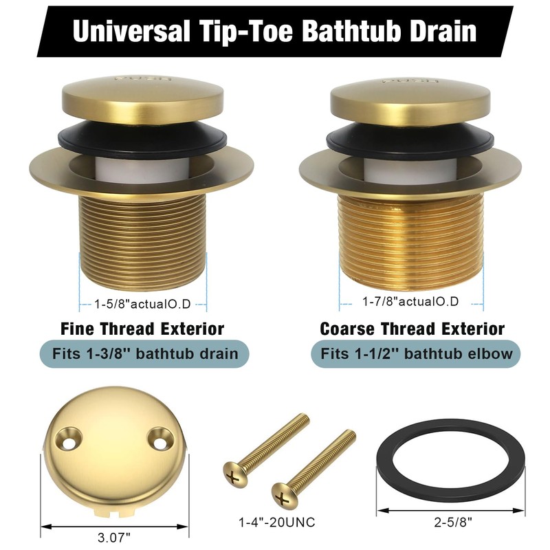 - Versatile Fit: Includes two sizes of O-rings to accommodate 1-3/8" or 1-1/2" tub drains, ensuring a secure and universal fit