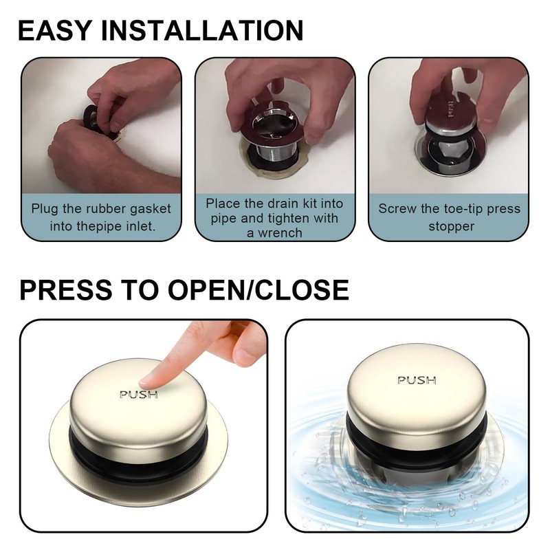 - Easy Installation: Our tub stopper is designed for hassle-free setup,fitting 99% of lift-and-turn,tip-toe,and trip lever drains.No professional tools required