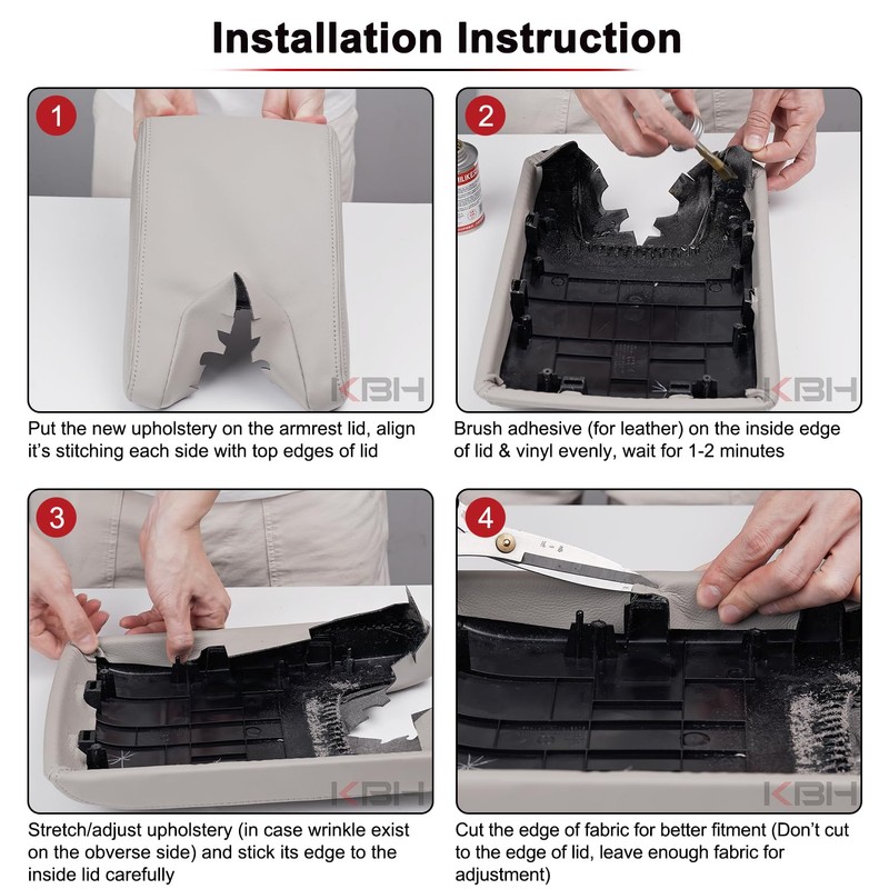 - EASY INSTALLATION - Disassemble armrest lid and remove original worn vinyl, Once removed, a new replacement cover can be installed using adhesive or staples, trim and stretch leather to make it fit snugly. Please check the installation instruction in the product image
