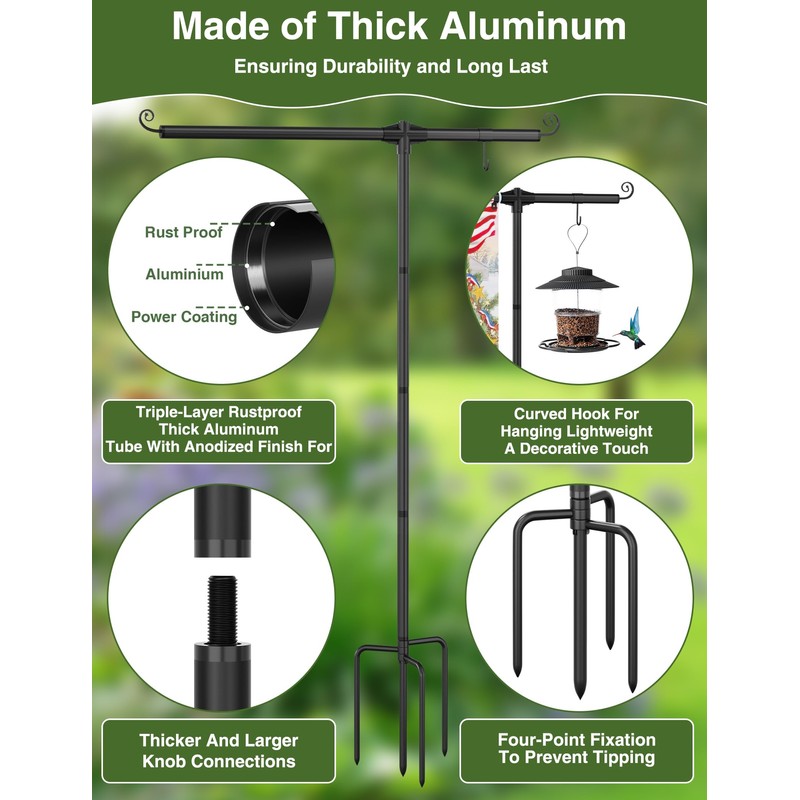 • Adjustable Shepherd Hook - Unlike most shepherd's hook garden flag stands on the market, we've revolutionized the design with an innovative patent. Transforming the static hook into an adjustable, movable hanger, you can customize the spacing to fit items of any size. Elevate your garden decor with endless possibilities