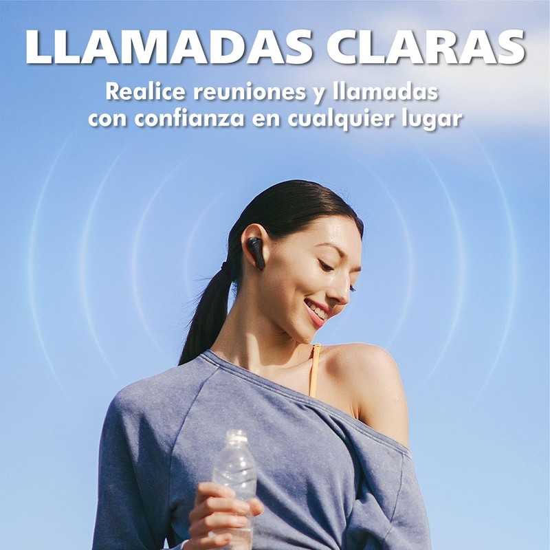 Con hasta 6 horas de reproducción continua y 120 horas en modo de espera, estos estos manos libres bluetooth te acompañan durante todo el día. Además, su estuche de carga compacto te permite recargarlos fácilmente mientras estás en movimiento, asegurándote de que siempre estén listos para usar.