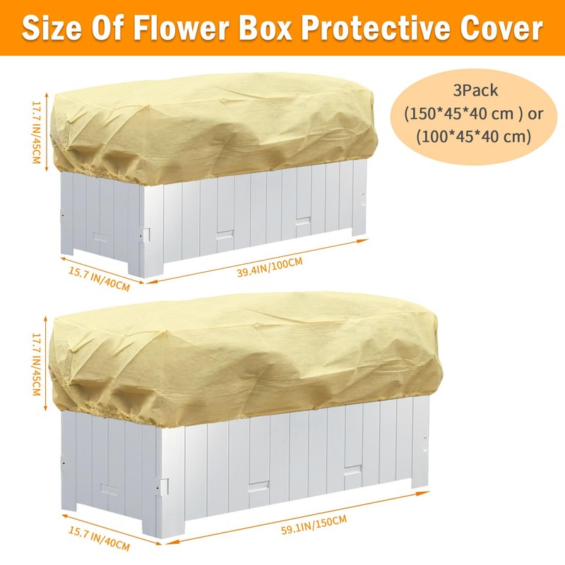 - Package Includes:Cold protection plant cover comes in 2 different sizes, 3Pack (150*45*40 cm ) or (100*45*40 cm) .It has generous space for cover;suitable for balcony plants, flower box plants, long container plants and so on, you can find an appropriate size for your plant