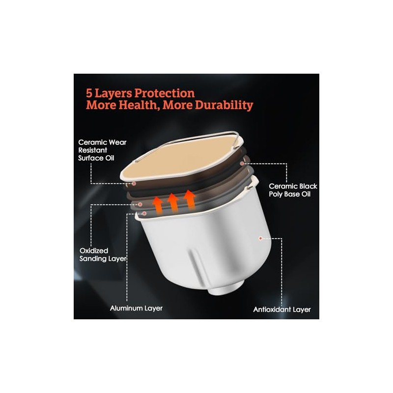 KBS Bread Maker Ceramic Pan, Bread Pan with Kneading Paddle for 2LB MBF010 Bread Machine, 5-Layer Crystal Metal Structure Bread Ceramic Pan