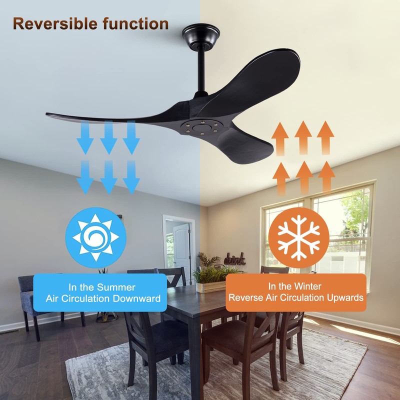 - 【Reversible & Wide Application】The wood ceiling fan is reversible, ceiling fan without light allows you to change the fan's direction seasonally. In summer it brings cool freshness to your rooms. In winter better distribution of warm air, Let the heating fill the whole room And it can also be used as a decoration to enhance the beauty of your home. The stylish and minimalist design makes it suitable for living rooms, bedrooms, dining rooms and kitchens.