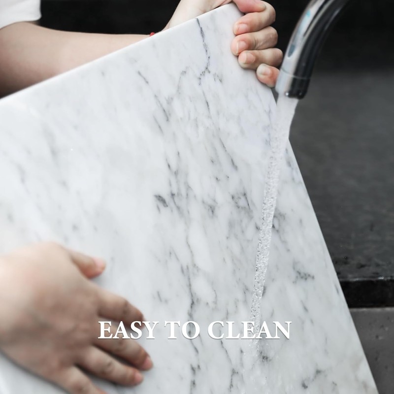 • Easy To Clean : The surface of this stone cutting board is polished with marble sealant, and the surface is smooth and easy to clean. You can rinse with clean water after cutting fruits and vegetables, and it will not stick to stains.