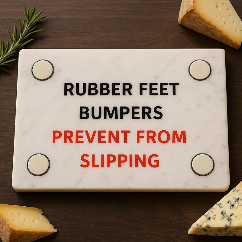 • Non-Slip : The bottom of the marble board is equipped with a non-slip rubber feet pad to prevent the marble slab from sliding around and protect your countertops and tabletops against scratching and scuffing.