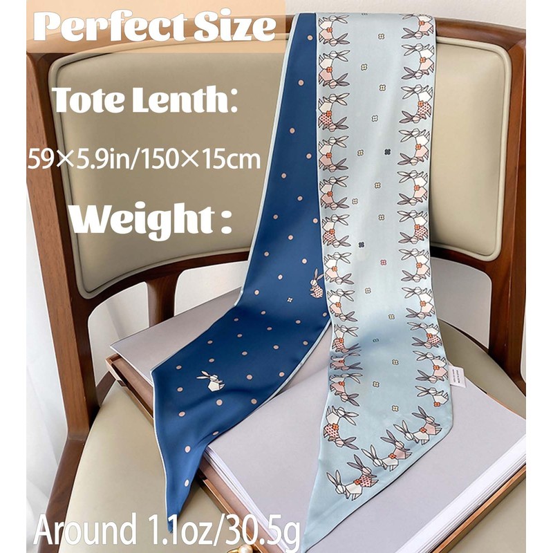 Kcctoo Bufanda de seda de morera de 27.5 pulgadas para mujer, bufanda de satén con cuello cuadrado para bolsa, bufandas de pelo, regalo, I15 Azul / Conejo 59 x 5.9 pulgadas, 59” x 5.9”/150 x 15cm