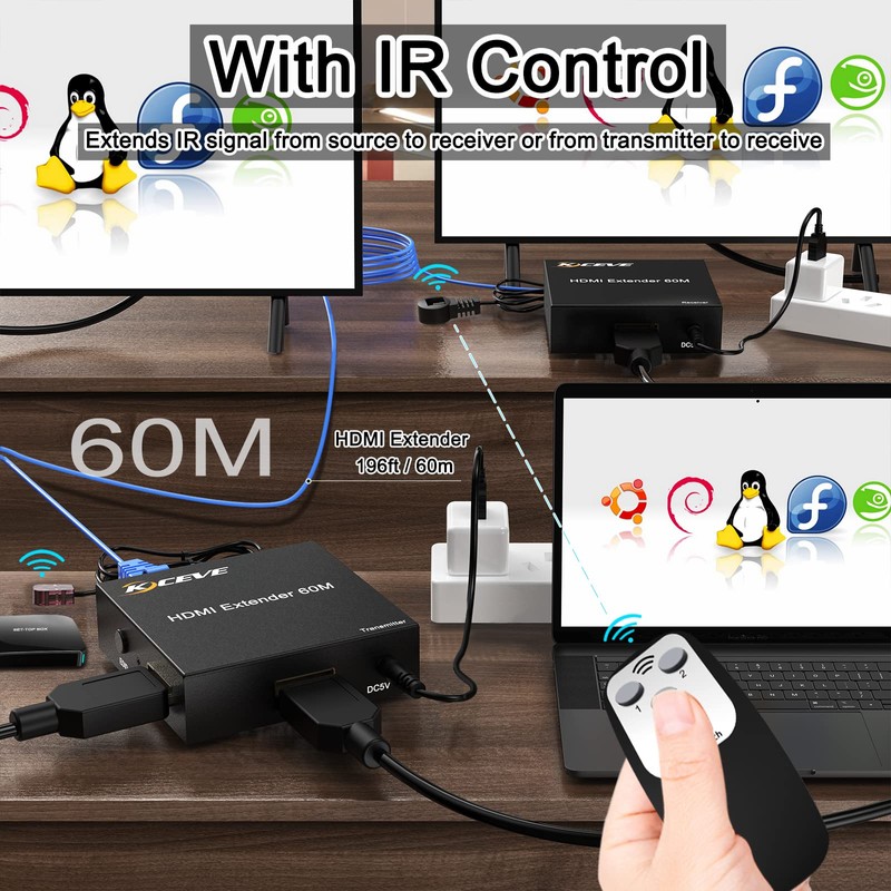 - This 60M HDMI Extender can transmit HDMI audio / video and IR signals to 60 meters by using a CAT6 / CAT6a / CAT7 Ethernet cable. Supports up to 1080p high definition resolution.