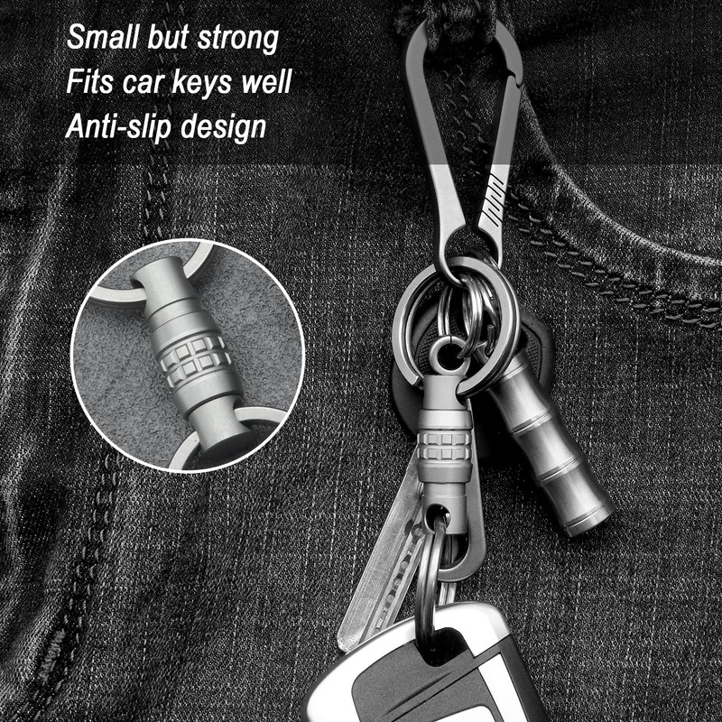 • 【Quick Release Titanium Keychain】: Tired of detaching keys, especially large car keys by breaking your nails with traditional keychain? Now there is a solution! This detachable keychain allows detaching keys within seconds and at great ease. You only have to pull it apart with a little trick.
