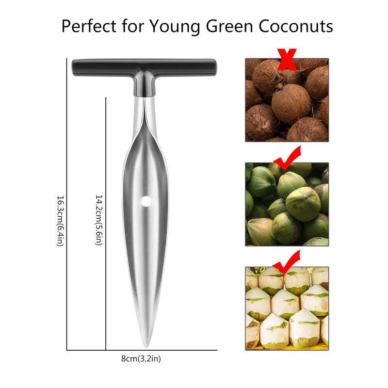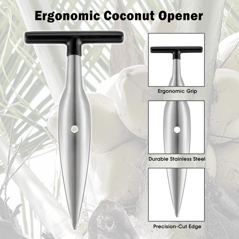 - Heavy-Duty Food Grade Stainless Steel – Built to Last: Each coconut cutter is made from high-quality food-grade stainless steel, ensuring durability, rust resistance, and long-term use. The solid construction makes it tough enough to pierce multiple coconuts without bending or dulling. it's safe for direct contact with food and liquids, and dishwasher safe for effortless cleaning