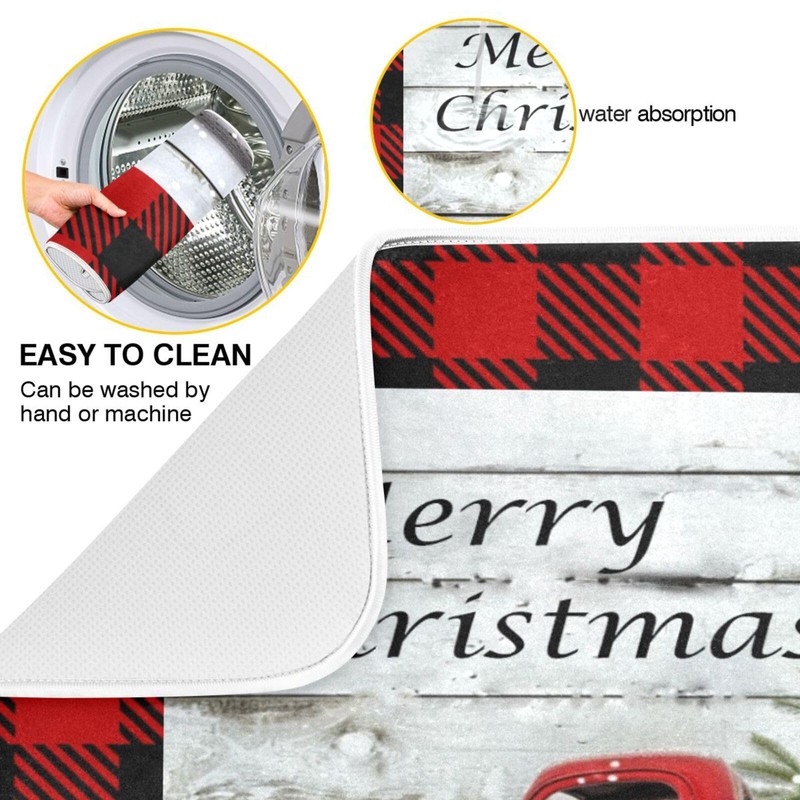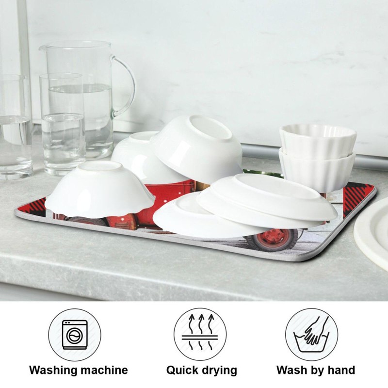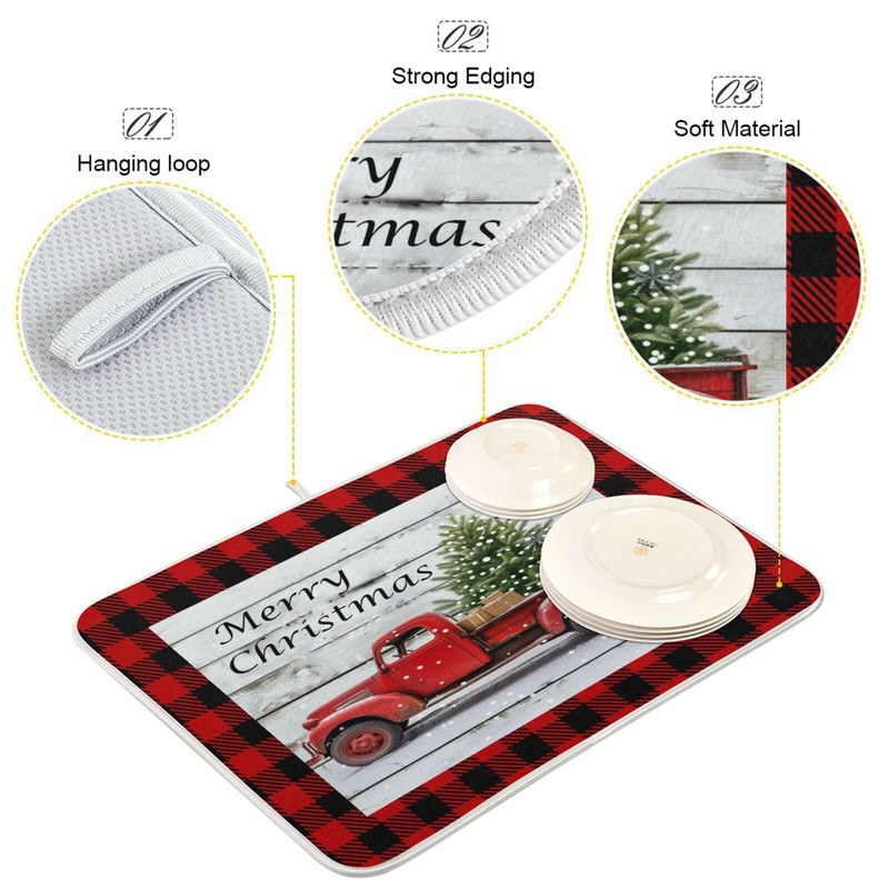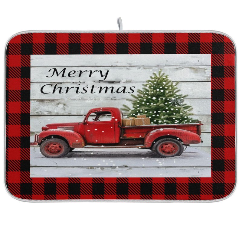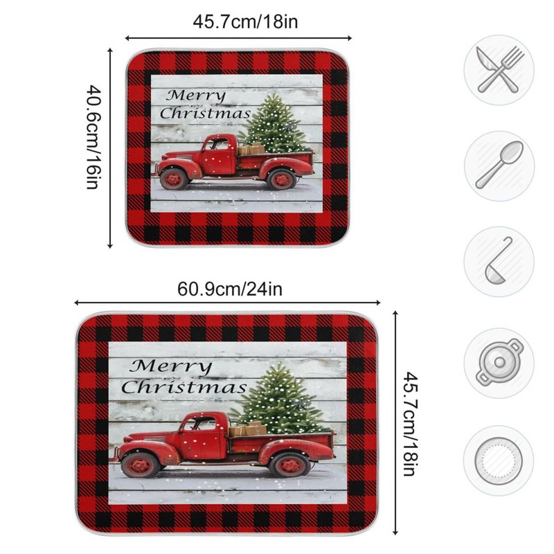 Kcldeci Merry Christmas Dish Drying Mat for Kitchen Counter,Red Truck Dish Drying Pad Dish Mat Microfiber Absorbent Dish Drainer Mat Rack Pads 16x18 inch