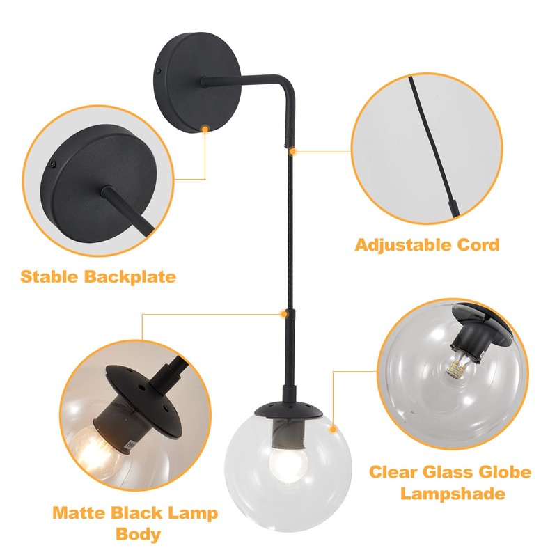 - ❉【Classic Globe Design】The modern ball wall light brings together a matte black finish with a chic sphere design that decorates your home with captivating style, with a black braided cord to perfectly curate a minimalist classic look.
