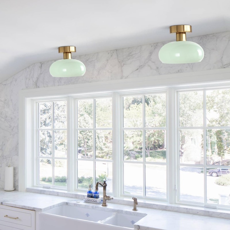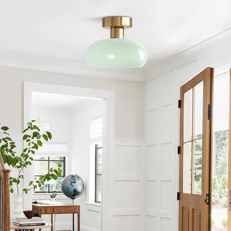 - Vintage Green Glass Shade: The brass flush mount ceiling light features green globe glass, the globe glass shade features a sleek dome design and green finish for a versatile minimalist design, which is both unique and beautiful. This modern gold flush mount ceiling light combines both vintage and modern farmhouse elements, and dome silhouette casts the light of the bulb downward, creating a romantic atmosphere for your home
