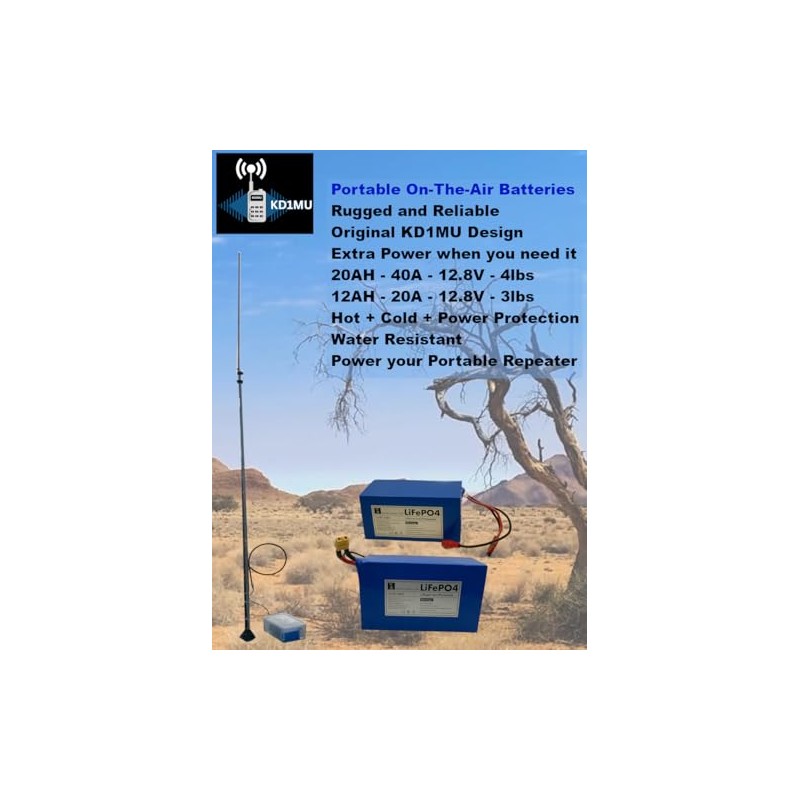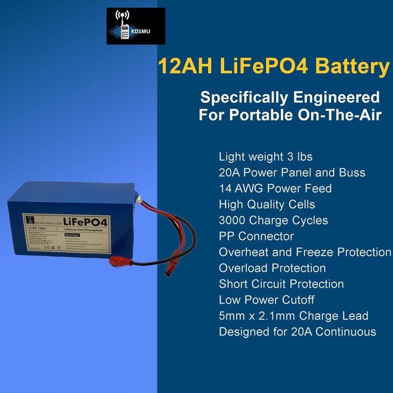 KD1MU 12AH LiFePO4 Battery with 20A Power Panel (BMS) and PP Connector for Ham Radio and GMRS Portable Operations