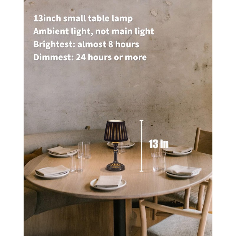 • 【Metal Material】 This tiny table lamp is 13 inches high, 6.3 inches wide and weighs 1.3 pounds in a compact size. Whether you are studying, reading or working, it doesn't take up much space but provides plenty of illumination light. The body is made of metal with coated finish. The fabric lampshade has good light transmission.