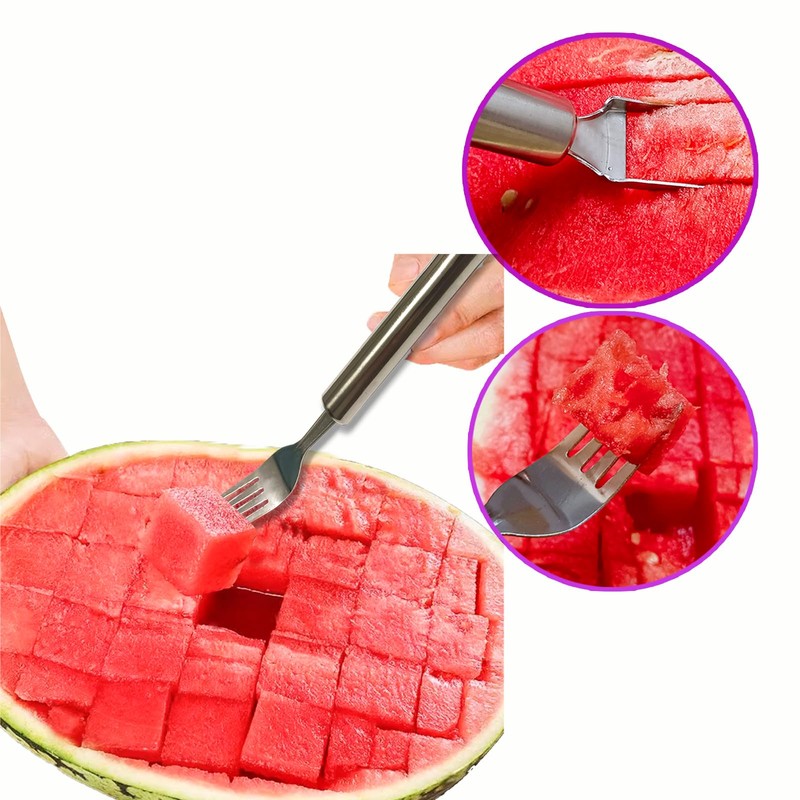 - What You Get: You will receive a 2-in-1 watermelon fork and knife. The size of the watermelon slicing fork is 23 * 2.5 * 3 cm / 9.06 * 0.98 *1.18 inches.