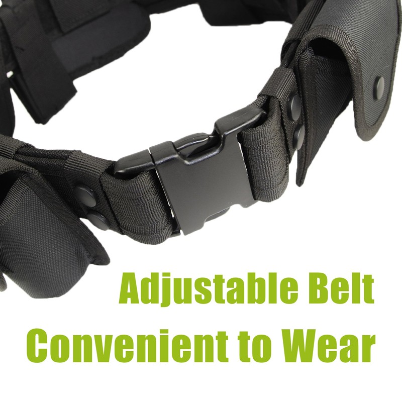 - 【10 in 1 Duty Belt】Adjustable seat 2 inch duty belt for enforcement tasks, built-in 9 different multi-functional component bags, including flashlight pouch, pistol pouch, walkie-talkie case, rope case, Handcuff Holders, cartridge bag, keys holder, baton holder.using high-quality materials, sturdy, durable, wear-resistant and tear-resistant.