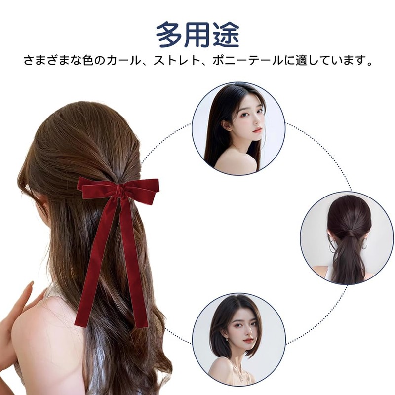 KDSSYFT Velour Ribbon Hair Accessory, Long Ribbon, Hair Clip, Ponytail, Stylish, Cute (Red)