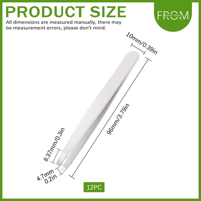 - 【Package Information】 You will receive 12pcs white eyebrow tweezers. The quantity is sufficient to provide convenience and efficiency in your personal care daily. Don't worry at all if you lose it during traveling or business trips!