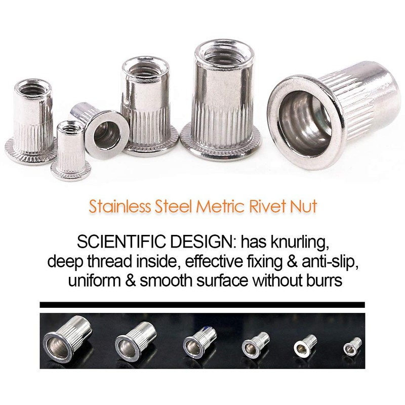 Keadic 205pcs 304 Stainless Steel Rivet Nut Assortment Set Flat Head Rivet Nut Insert Nuts Assortment for M3 M4 M5 M6 M8 M10