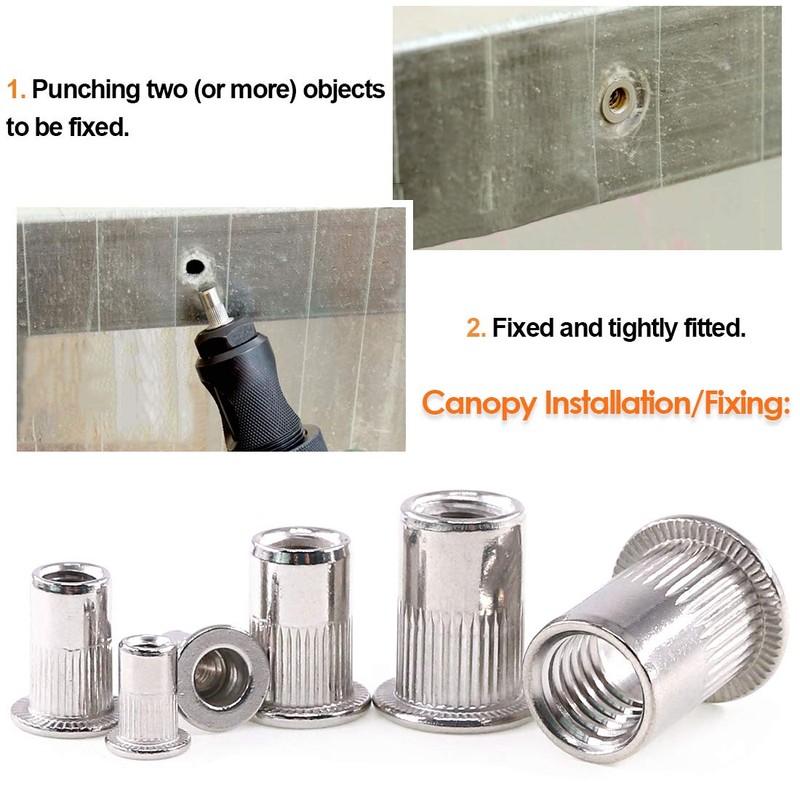 - 1. Good Quality Made of 304 stainless steel, our rivet nuts provide excellent durability, high strength and corrosion resistance.