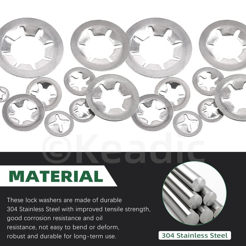 • 【304 Stainless Steel】These star lock washers are made of 304 stainless steel for superior rust and oxidation resistance. 304 stainless steel star lock washers are designed for long-term use in harsh environments such as high temperatures, cold weather, and high humidity areas. A must-have for both DIY enthusiasts and professional technicians.