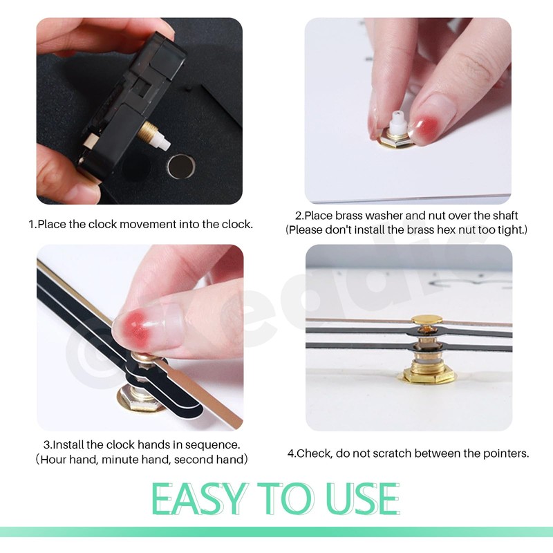 - 【Easy to Install】 Step 1: You need to remove the old hands from the movement of the clock; Step 2: Remove the old movement, please do not damage the rest of the clock; Step 3: Install our movement in the right place; Step 4: Gently install the attached hands in the proper position and assemble the clock intact. Work done!
