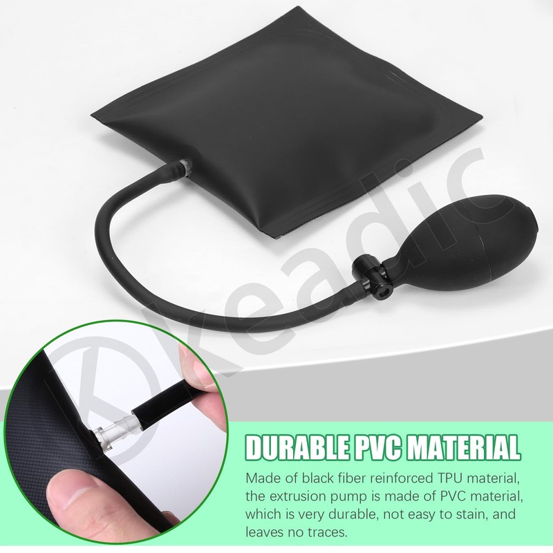 - Unique design: Heavy duty adjustable inflatable air shim bag designed with rounded corners, robust edges and a smooth exterior, the air wedge pump easily inserts into tight places to provide stability and reliability.