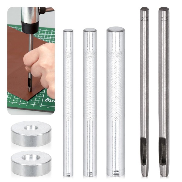- 【What you Get】 You will receive 7pcs in total, including 1pc 8mm/32inch rivet setter, 1pc 6mm/0.24inch rivet setter, 1pc 10mm/0.4inch rivet setter, 1pc double sided base for 6mm and 8mm rivets, 1pc double sided base for 8mm and 10mm rivets, 1pc 2.5mm/0.1inch hole punch and 1pc 3.5mm/0.13inch hole punch. The full range sizes of rivet hand pouch set will meet your different demands.
