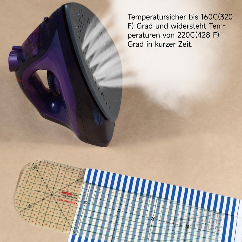 - High temperature resistant resin plastic. It is temperature resistant up to 160°C and can withstand temperatures of up to 220°C for a short time. Fold the fabric over the ruler and use a dry or steam iron to iron the seam or crease.