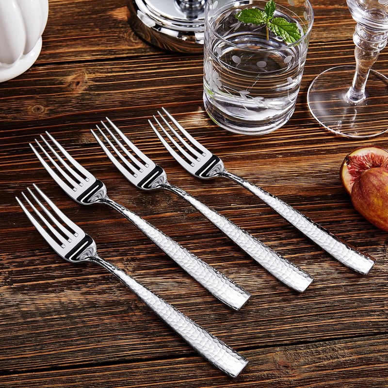 KEAWELL Premium 4-Piece Louis Hammered Fork Set, 18/10 Stainless Steel, Set of 4, Fine Fork Set with Squared Edge, Dishwasher Safe (8.3" Dinner Fork)