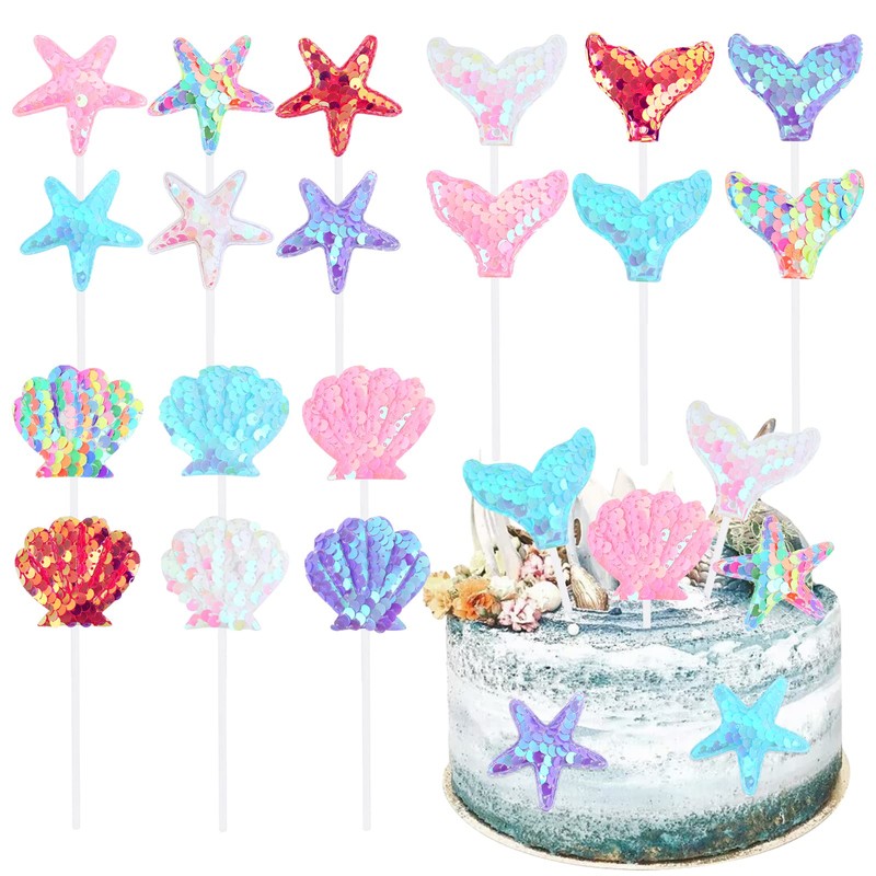 - Material: palitos no tóxicos para tartas que no tienen olor, estilo de diseño de cola de sirena con lentejuelas, para ser aplicados en alimentos, ten la seguridad de usar para dar sorpresa a la familia, amigos con estos adornos de sirena para tartas.