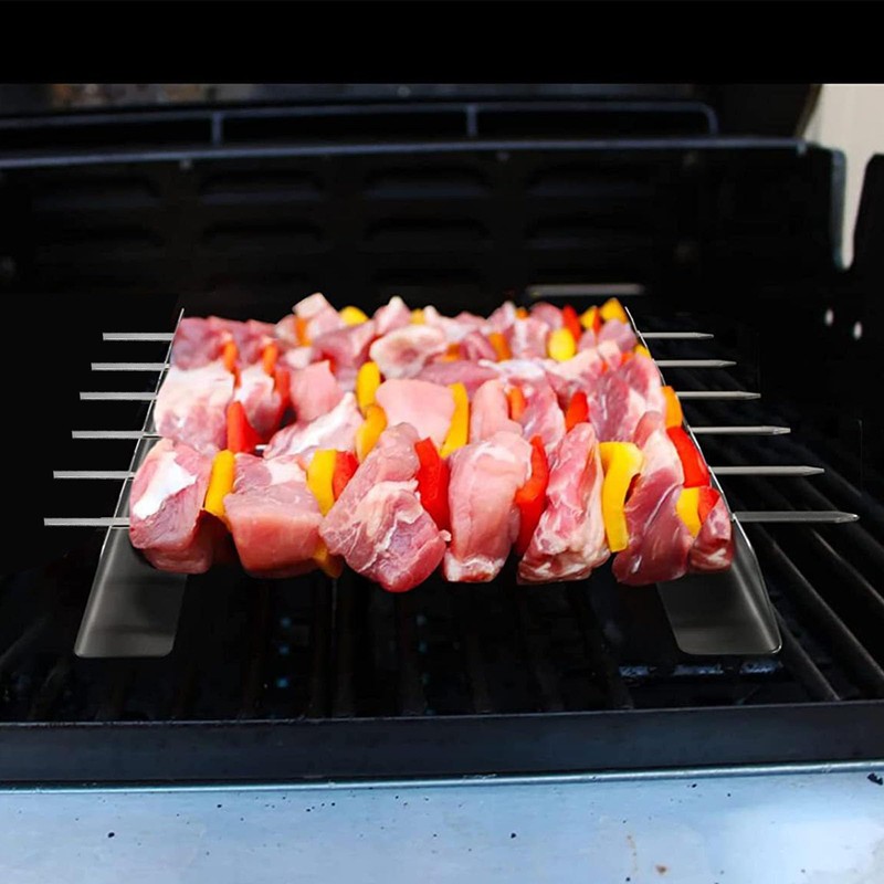 Usage: It can effectively prevent the skewers from burning or sticking to the grill. The right height also ensures the perfect distance between the grill and the kebabs to distribute the heat evenly and get delicious, juicy kebabs.