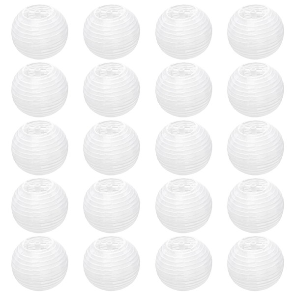 Keboyoe Pack of 20 Lanterns Paper Lampshade White Round Lanterns 7.5 cm Paper Lampshade Small Fabric Lantern for Wedding Birthday Garden Pool Party Children's Birthday Decoration Summer Party