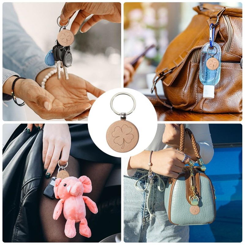 1. Natural wooden keychain with four-leaf clover pattern, beautiful texture, durable, lightweight and portable.