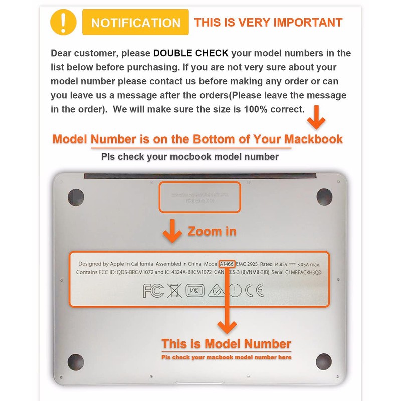 Please Check the Model Number "AXXXX" on the bottom of your Notebook before you place an order. Please make sure you select the exact same model number as the listing title stated above.