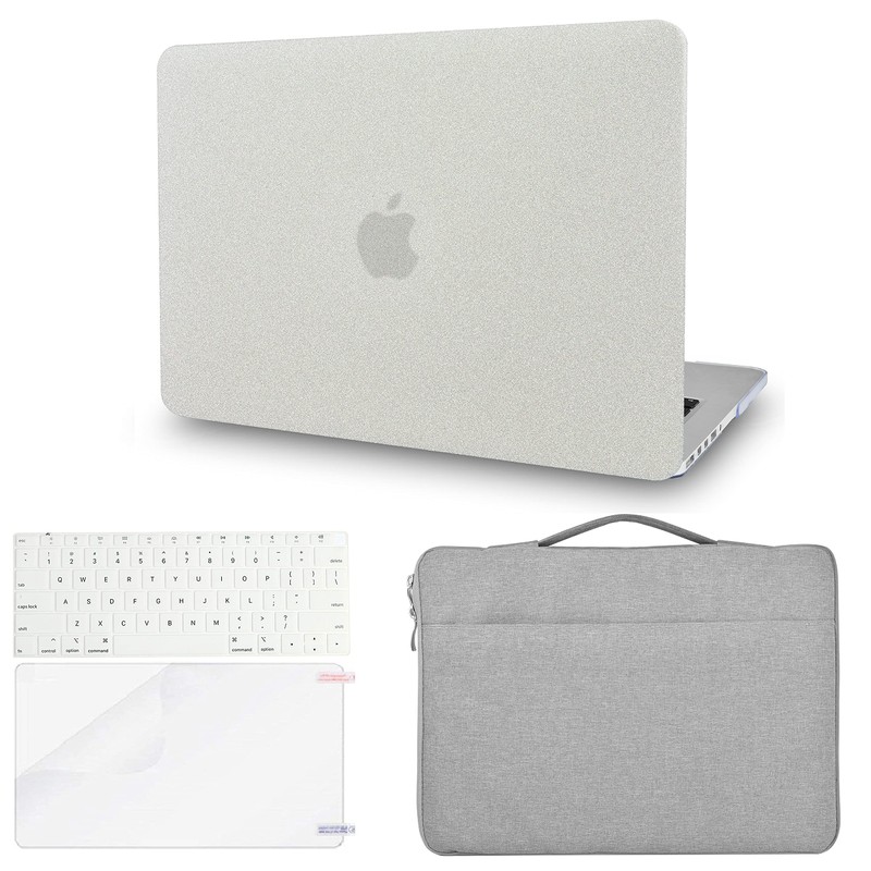 KECC Compatible with MacBook Pro 13 inch Case 2025-2020 with Touch Bar M2 A2338 M1 A2289 A2251 Plastic Hard Shell + Keyboard Cover + Sleeve Bag + Screen Protector (Pearl White Sparkling)