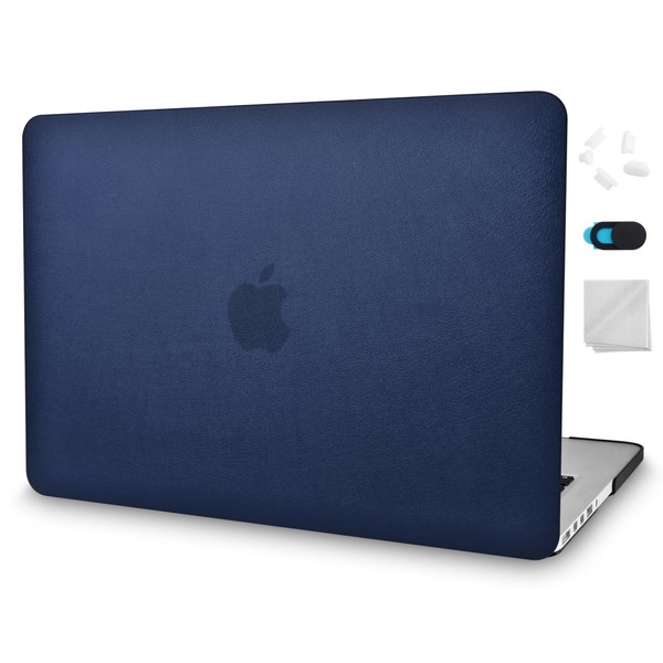 KECC Compatible with MacBook Pro 15 inch Case Cover 2016-2019 Release A1990 A1707 with Touch Bar Protective Italian Leather Hard Shell(Navy Blue Leather)