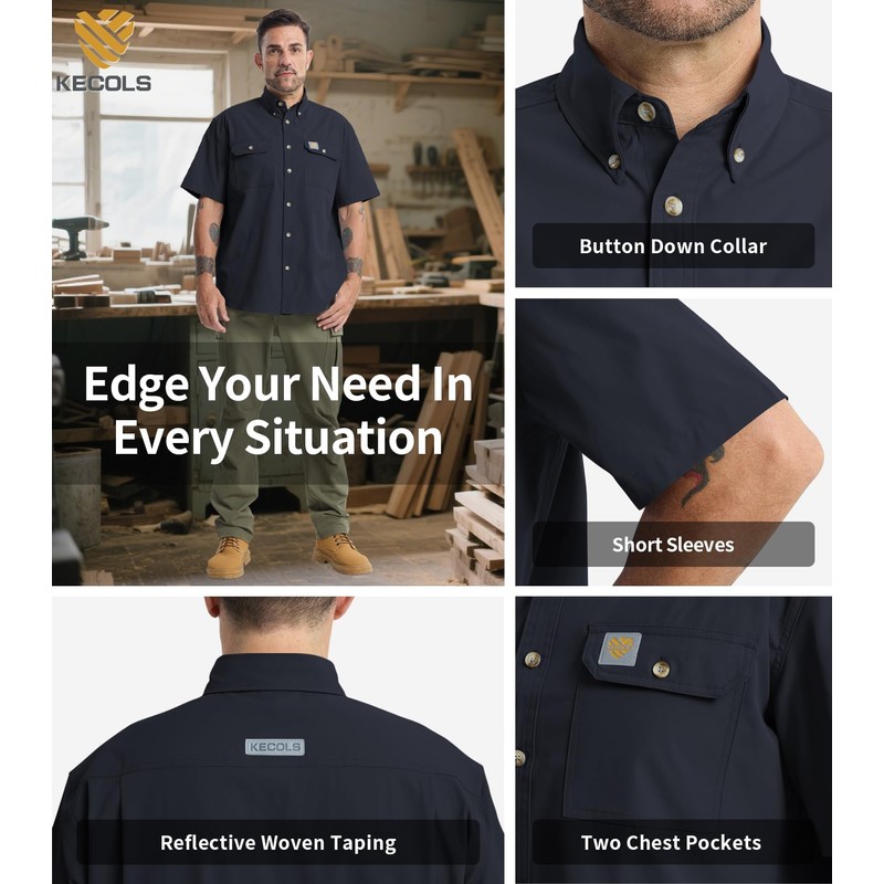 Kecols Mens Regular Fit Work Utility Shirt Midwweight with Two Chest Pockets Wrinkle-Resistant Industrial Work Wear Navy