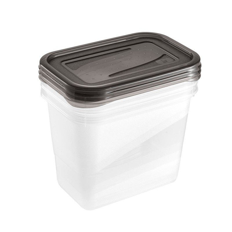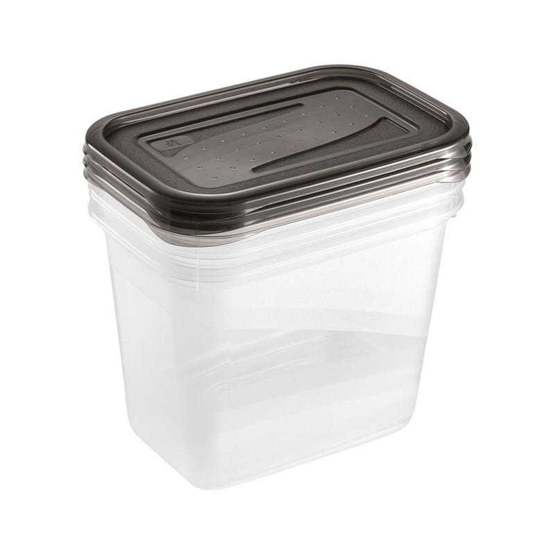 - Box contents: 1 fredo fresh food storage container, 3 pieces, 1 litre, dimensions: 15.5 x 10.5 x 11.5 cm, weight: 0.167 kg, colour: crystal grey (transparent), item number: 3067482700000