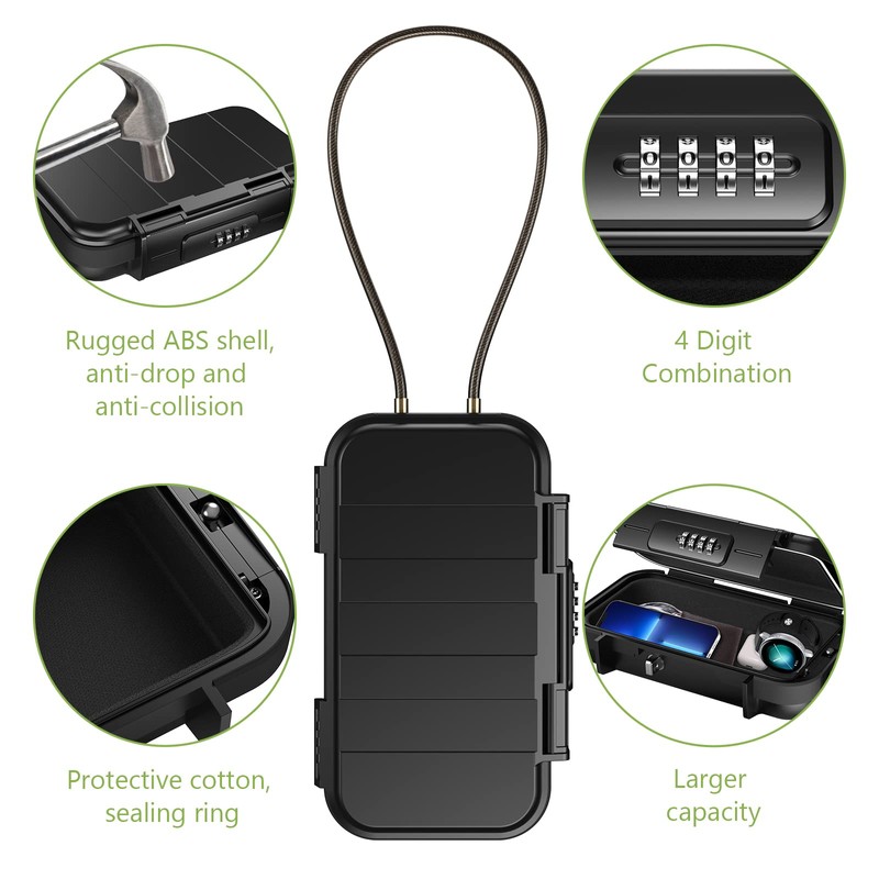 - EXCELLENT SECURITY: This combination lock box for car with 4 dials offers up to 10000 combination possibilities so that it is hard to crack. And it gives you the option of resetting the combination whenever you wish. Tips: After the password is reset, it is best to take a photo record or record it with a note.