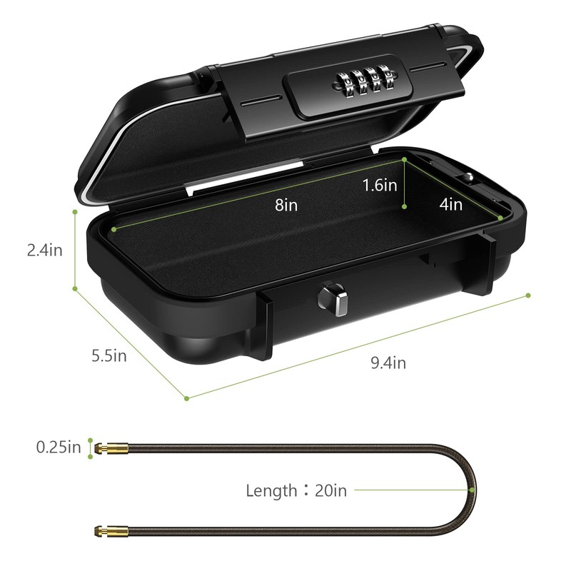 - LARGE STORAGE CAPACITY: With a large storage space, this portable safe is best suited for protecting smartphones, passports, cash, credit cards, MP3 players, and other compact but expensive that are especially vulnerable to theft.