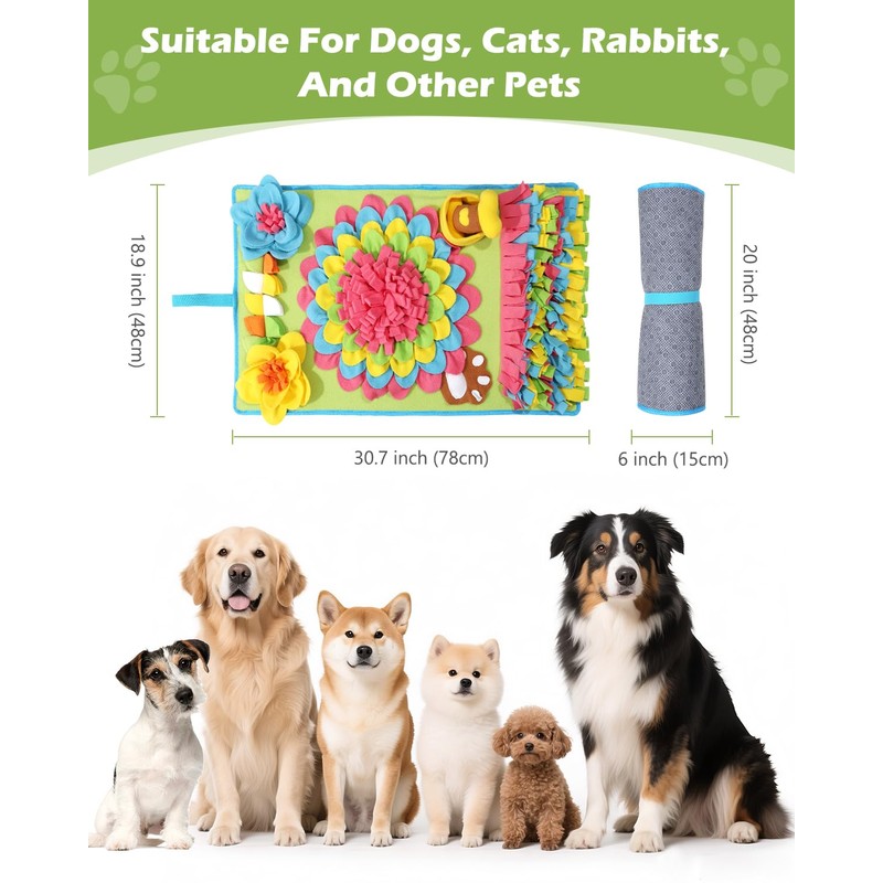 - Widely Application: With a large size (30.7" x 18.9"), this slow feeder mat suits most small and medium dogs (not recommended for large and aggressive chewers dogs), as well as cats and rabbits. Ideal for puppy training or anxiety relief, it’s a must-have interactive pet toy for mental stimulation and fun
