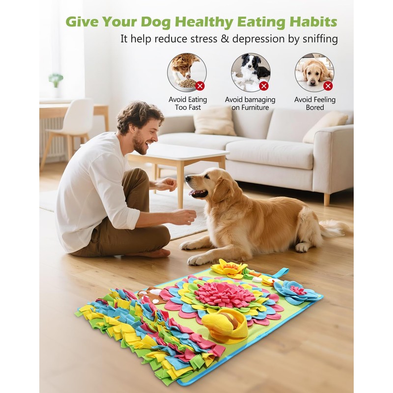- Stimulates Natural Foraging & Slows Eating: This snuffle mat for dogs activates your pet’s natural foraging instinct, encouraging slow feeding to prevent bloating and improve digestion. The interactive feeding mat hides treats in varied patterns, engaging your dog’s sense of smell and reducing dog anxiety through mental stimulation