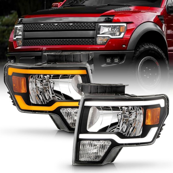 KEEKPO - For 2009-2014 Ford F150 Upgrade LED Tube Sequential Siganl Headlights Headlamps w/Greeting Light Left+Right