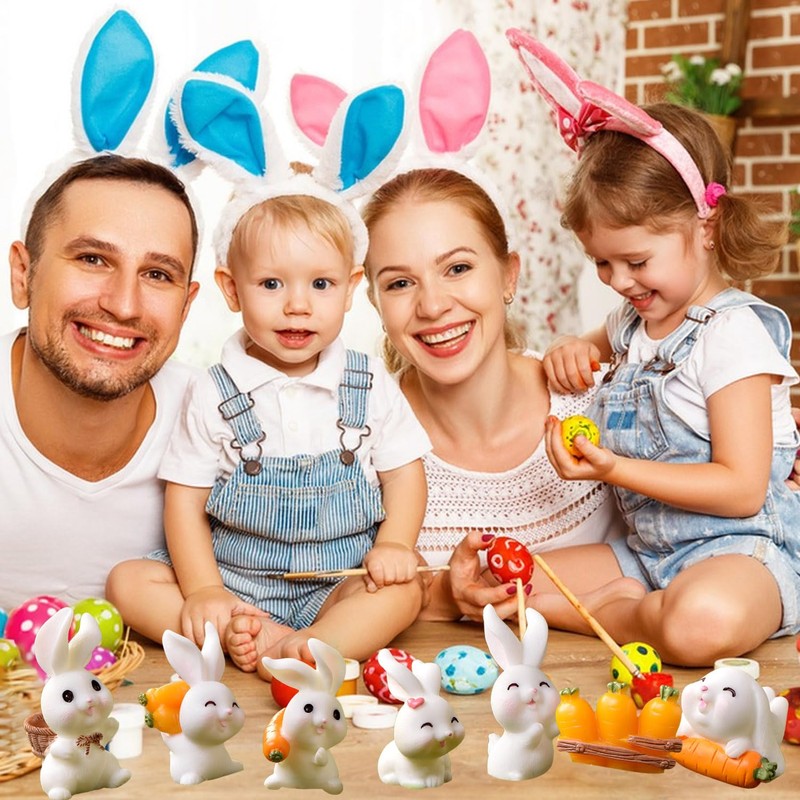 KEELYY Pack of 7 Mini Rabbit Figures Easter Decoration Resin Easter Bunny Figure Rabbit Figures Micro Landscape Bunny Sculpture Dollhouse Resin Spring Festival Party Decoration Desktop Ornament