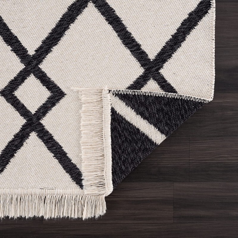 Keen Home Design Area Rugs - 3x5 Reversible and Machine Washable Boho Rug - 100% Cotton - Two Sided Rug for Living Room, Kitchen, Hallway, Bedroom, Entryway - (2’8’’ x 4’11’’, Black)