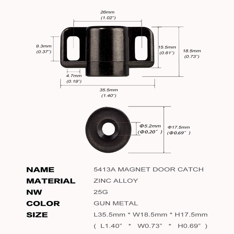 • Gun MetalGun Metal color tone kitchen cabinet catch has wide range color match for furniture and perfect metallic feeling, match your style of cabinet pulls and will lift the appeal of your tired-looking cabinets