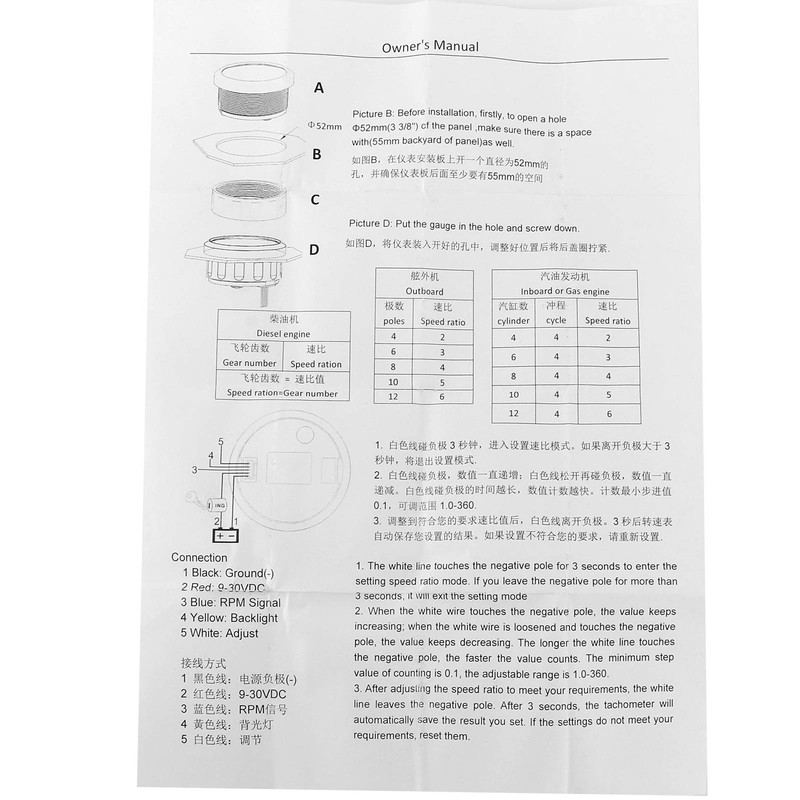 • 【Ampliamente utilizado】: este tacómetro se usa ampliamente en automóviles, motores fuera de borda, maquinaria de construcción y modificación de motocicletas.