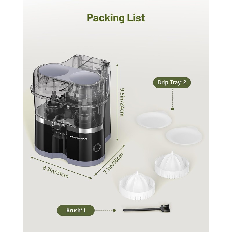 KEENSTAR Electric Citrus Juicer, Dual-Head Orange Juicer Squeezer with Power Cord, Portable Juicer with Cleaning Brush for Lemon, Grapefruit, High Juice Yield, One Touch Operation, Easy to Clean